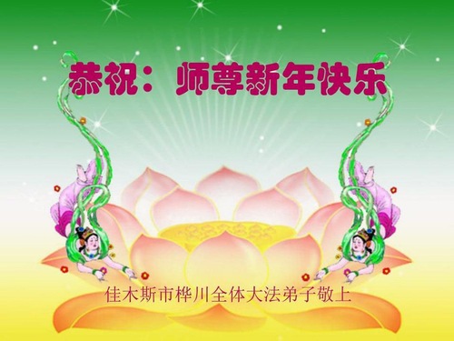 Falun-Dafa-Praktizierende in der Stadt Jiamusi, Provinz Heilongjiang, China, wünschen dem verehrten Meister respektvoll ein frohes neues Jahr (25 Grüße)
