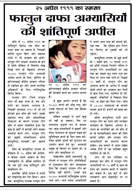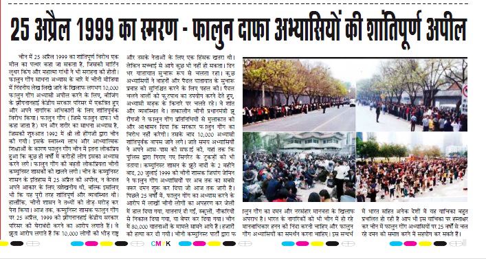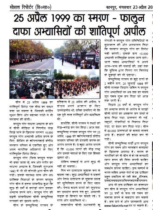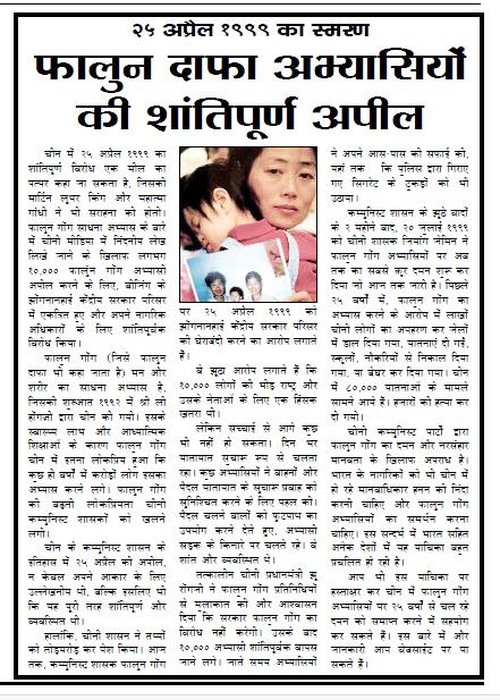 (Minghui.org) In Indien berichteten 25 Nachrichtenmedien über den 25. Jahrestag des Appells zum 25. April und brachten ihren Lesern nahe, wie und warum dieser Tag in der modernen Geschichte von Bedeutung ist.