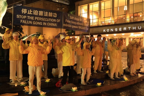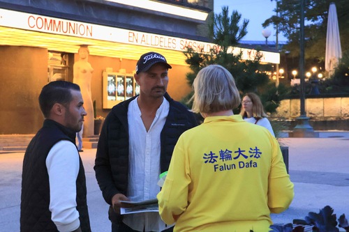 Viktor Järnekull, ein 22-jähriger Ingenieurstudent, ging am Freitagabend am Gustav Adolf Torg vorbei, als er Praktizierende sah, die während ihrer Kerzenlichtmahnwache still meditierten. Er war fasziniert und unterhielt sich bis zum Ende der Veranstaltung mit einem Praktizierenden, der Flugblätter verteilte.
