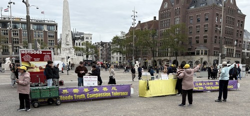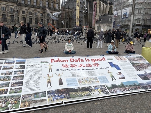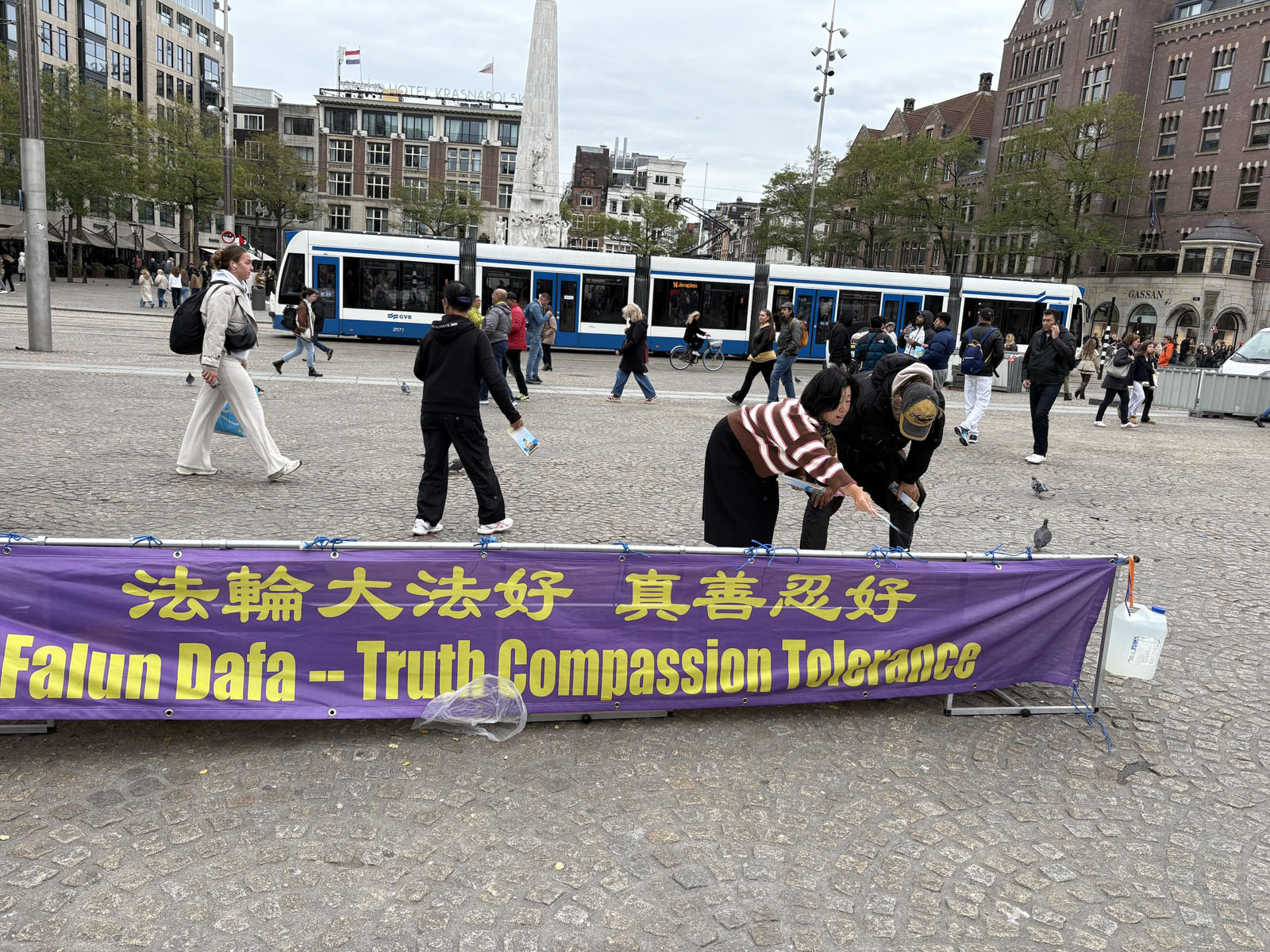 Amsterdam ist nicht nur die Hauptstadt der Niederlande, es besticht auch durch eine lange Geschichte hinsichtlich Toleranz, der freien Meinungsäußerung und der Menschenrechte. Die Praktizierenden stellten ihren Informationsstand im Herzen der Stadt auf dem Dam-Platz auf, einem Anziehungspunkt für niederländische und ausländische Touristen.