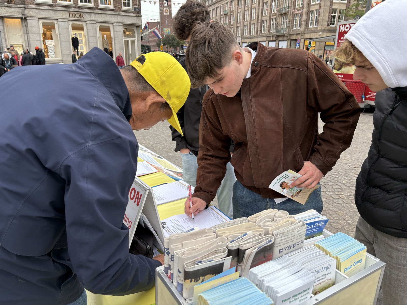 Anlässlich dieser Aktionen lernten niederländische Bürger wie auch Touristen Falun Dafa kennen. Sie bezeugten ihre Unterstützung für den unermüdlichen Einsatz der Praktizierenden, das Bewusstsein für die Praktizierenden in China zu schärfen, die seit über 26 Jahren unter der Verfolgung durch die KPCh leiden. Zahlreiche Passanten unterschrieben die ausgelegte Petition, die ein Ende des staatlich geförderten Organraubs an Praktizierenden in China fordert.