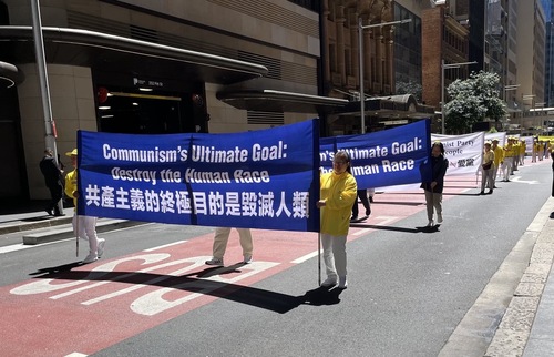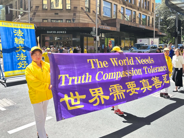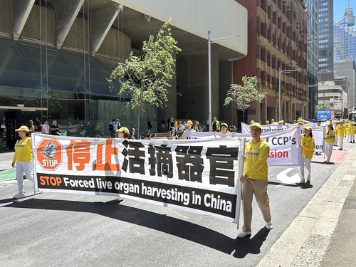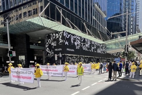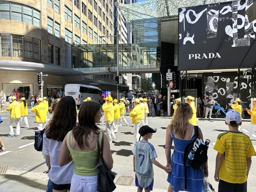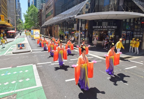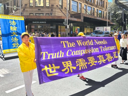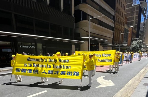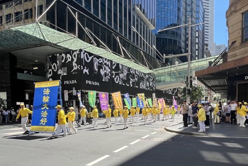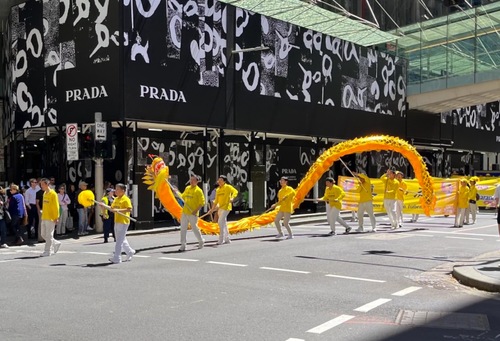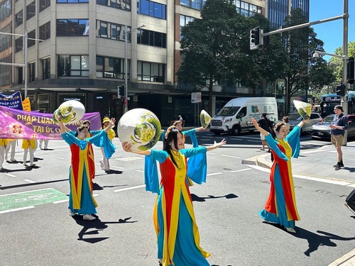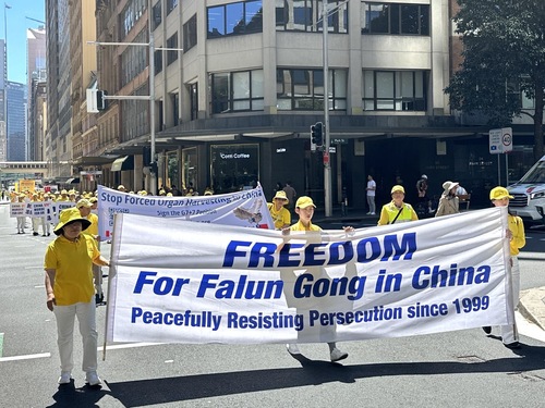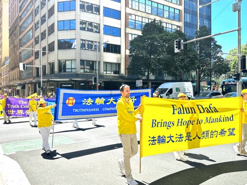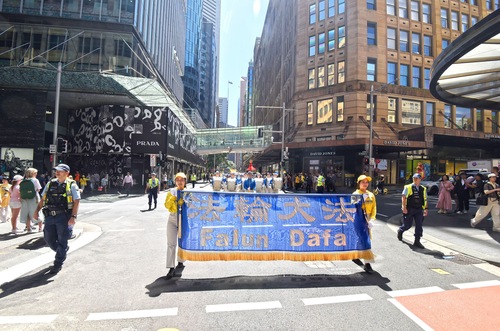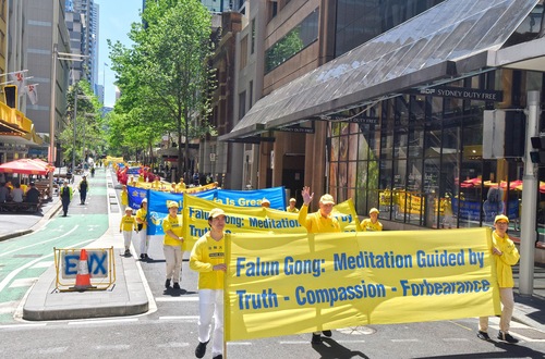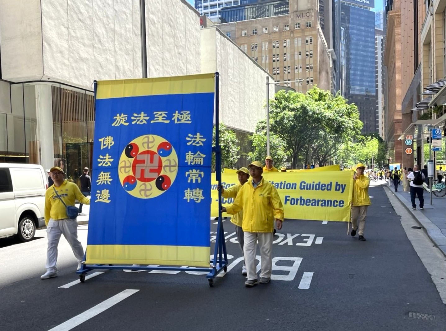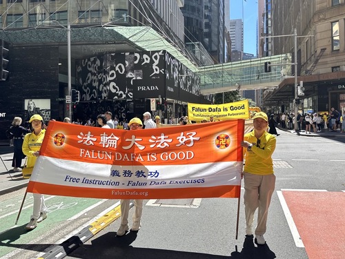Der Demonstrationszug gehörte zu einer dreitägigen Veranstaltungsreihe im Rahmen der australischen Falun-Dafa-Konferenz zum Erfahrungsaustausch 2025. Er setzte sich am Martin Place in Bewegung. Falun-Dafa-Praktizierende verschiedener Ethnien trugen Transparente und Fahnen und führten die Übungen vor.