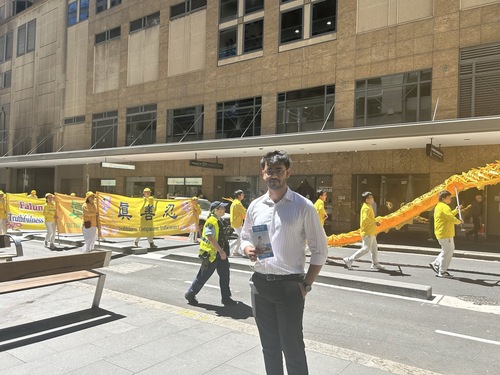 Der Bildungsberater Akash hörte zum ersten Mal von Falun Dafa und war beeindruckt vom Einsatz der Praktizierenden. „Diese Parade ist großartig. Es gibt so viel zu sehen“, staunte er. „Ich höre zum ersten Mal von Falun Dafa und sehe eine Gruppe von Menschen, die gemeinsam gehen und für etwas werben – ihre Traditionen. Ich bin überzeugt, dass das wirklich eine gute Wirkung hat. Wahrhaftigkeit, Güte und Nachsicht sind sehr wichtig. Die Welt verändert sich und ein guter Mensch zu sein, ist wichtig und hilft der Gesellschaft. Ich schätze sehr, was Sie hier tun, um den Menschen zu helfen. Es ist gut.“