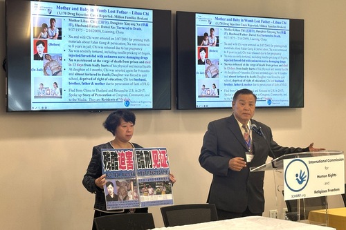 Chi nahm an der Konferenz teil, um Fotos ihres Mannes Xu Dawei zu zeigen, auf denen er nach der Folter abgemagert, voller Verletzungen und dem Tode nahe war.