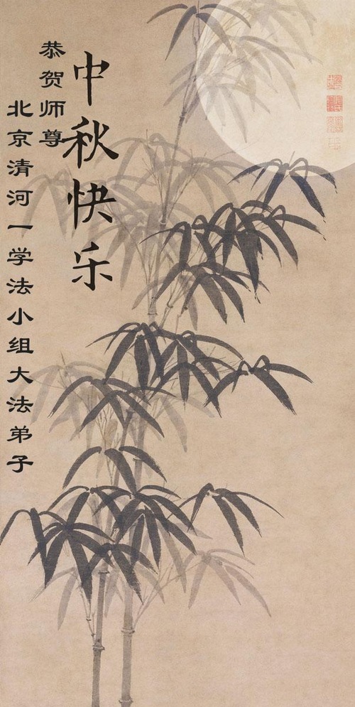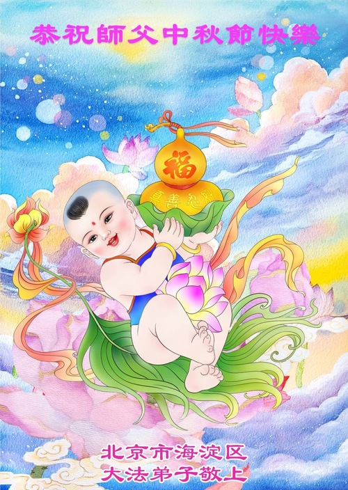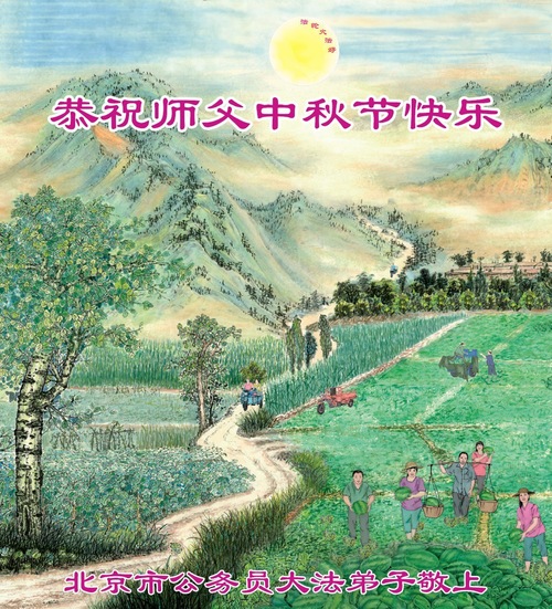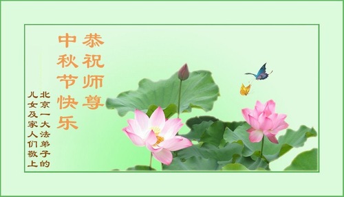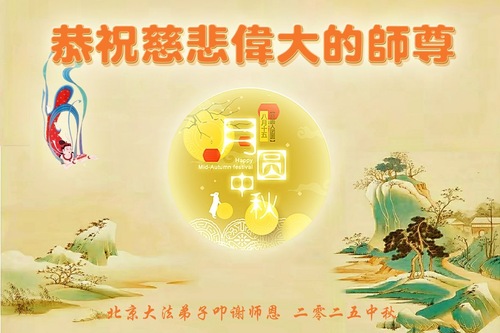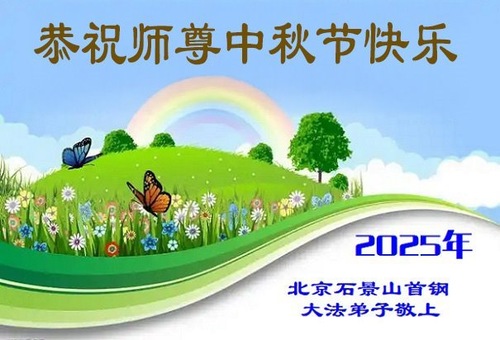 Eine Fa-Lerngruppe aus dem Bezirk Shijingshan schreibt: „Zum nahenden Mittherbstfest denken die Jünger ehrfürchtig an den Meister. Wir sind Dafa-Jünger, die sich seit fast dreißig Jahren kultivieren. Wir werden uns standhaft bis zum Ende im Falun Dafa kultivieren, die Samen von ‚Wahrhaftigkeit, Barmherzigkeit, Nachsicht‘ in die Menschenwelt säen, die drei Dinge gut machen und dem Meister nach Hause folgen.“