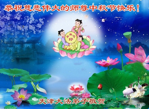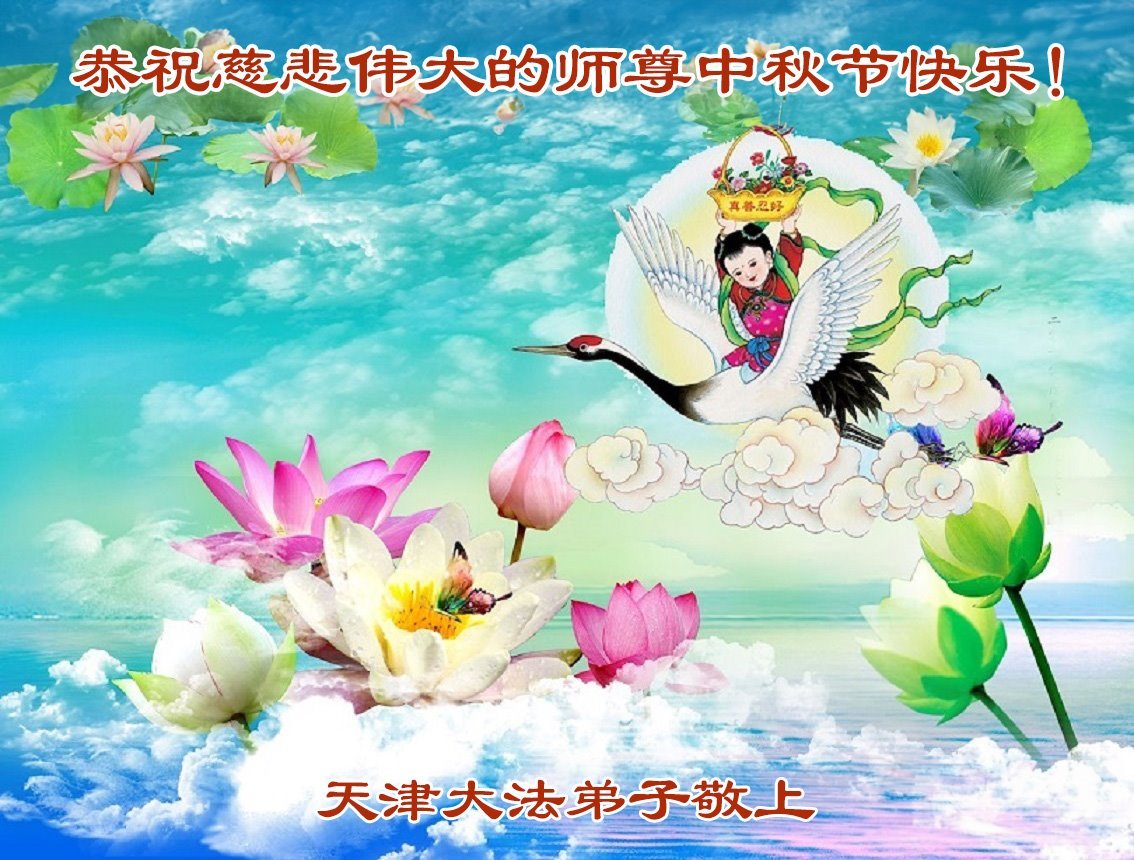 Falun-Dafa-Praktizierende in der chinesischen Stadt Tianjin wünschen dem verehrten Meister respektvoll ein frohes Mittherbstfest! (18 Grüße)