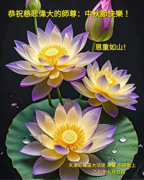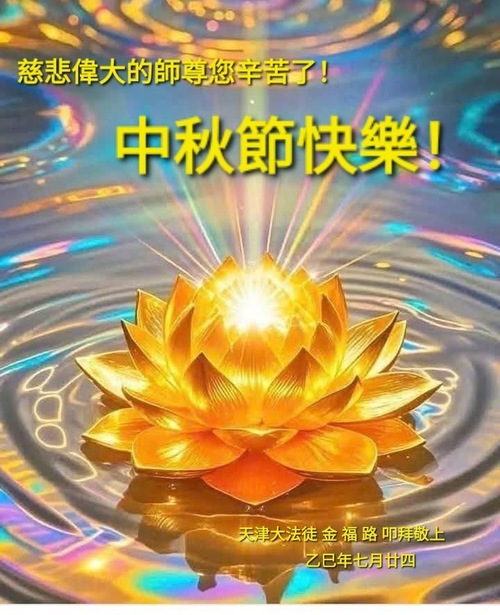 Falun-Dafa-Praktizierende in der chinesischen Stadt Tianjin wünschen dem verehrten Meister respektvoll ein frohes Mittherbstfest! (18 Grüße)