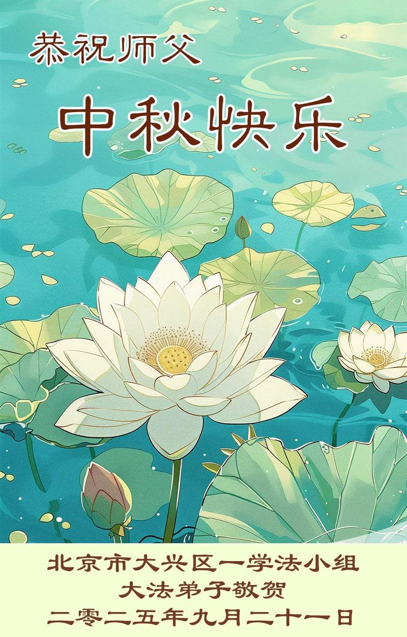 Falun-Dafa-Praktizierende in Peking wünschen dem verehrten Meister respektvoll ein frohes Mittherbstfest! (18 Grüße)