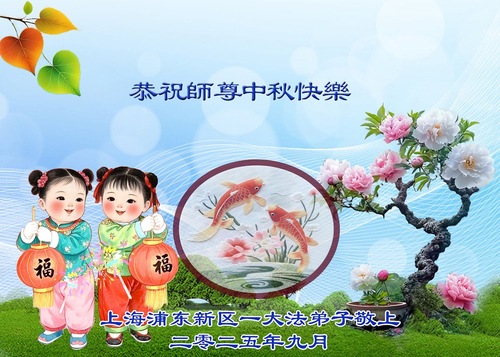 (Minghui.org) Zum Mittherbstfest senden Falun-Dafa-Praktizierende aus aller Welt Glückwünsche und Grußkarten an die Minghui-Website. Damit wünschen sie dem verehrten Meister Li Hongzhi respektvoll ein frohes Fest und danken für die Lehre des Falun Dafa mit den universellen Werten Wahrhaftigkeit, Güte und Nachsicht.