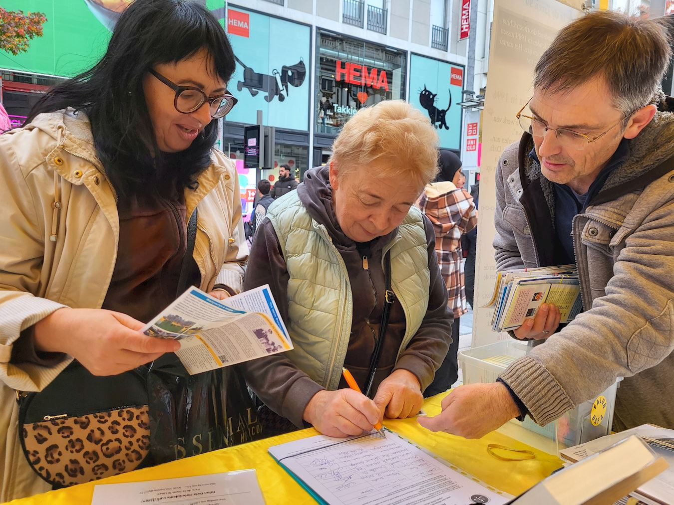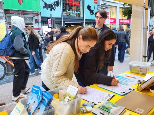 Passanten unterzeichnen eine Petition, die ein Ende der Verfolgung von Falun Dafa fordert