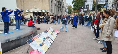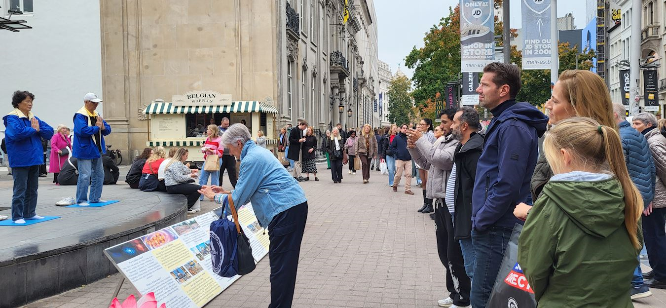 (Minghui.org) Praktizierende stellten am 11. Oktober 2025 bei einer Veranstaltung im Einkaufsviertel Meir in Antwerpen, Belgien, Falun Dafa vor. Sie informierten die Passanten über die Verfolgung durch die Kommunistische Partei Chinas (KPCh) und sammelten Unterschriften für ein Ende dieses Verbrechens. Viele Passanten blieben stehen, um sich über Falun Dafa zu informieren und ihre Unterstützung für ein Ende der Verfolgung auszudrücken, zum Beispiel mit ihrer Unterschrift unter einer Petition.