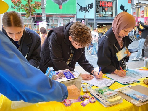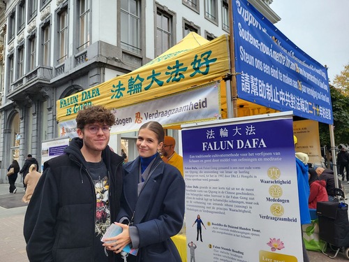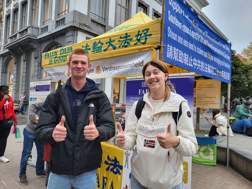 Rogier und Eva sahen den Praktizierenden bei den Übungen zu und unterschrieben anschließend die Petition. Sie erklärten, sie seien gegen die Verfolgung und würden die Glaubensfreiheit schätzen.