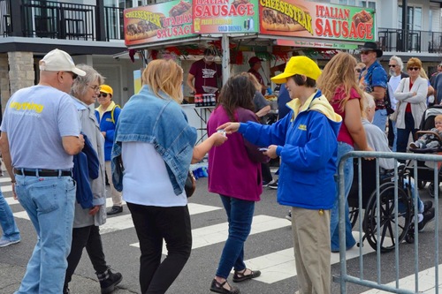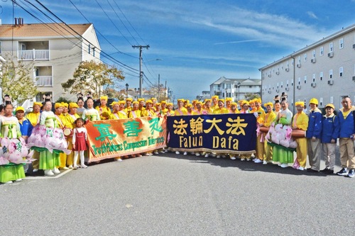 Falun-Dafa-Praktizierende nehmen an der 34. jährlichen Ocean County Columbus Day Parade in Seaside Heights teil