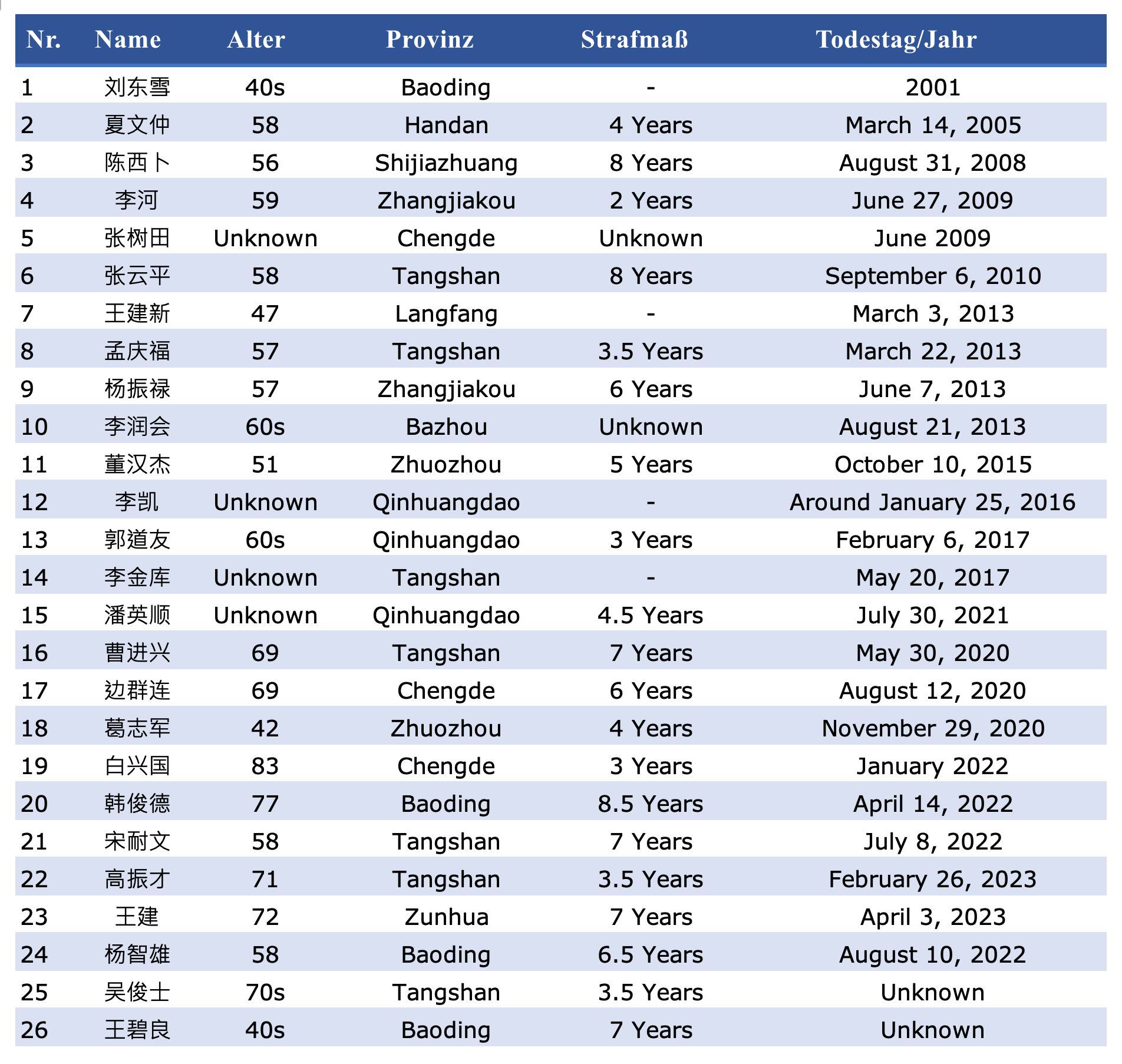 Seit Beginn der Verfolgung von Falun Dafa durch die Kommunistische Partei Chinas (KPCh) im Juli 1999 wurden viele männliche Falun-Dafa-Praktizierende nach ihrer Verurteilung in das Gefängnis Jidong gebracht. Fast 30 Praktizierende starben dort infolge der Verfolgung.