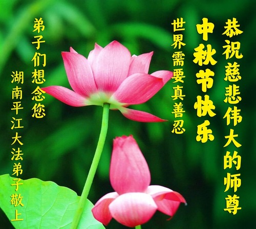 Falun-Dafa-Praktizierende in der chinesischen Provinz Hunan wünschen dem verehrten Meister respektvoll ein frohes Mittherbstfest! (19 Grüße)