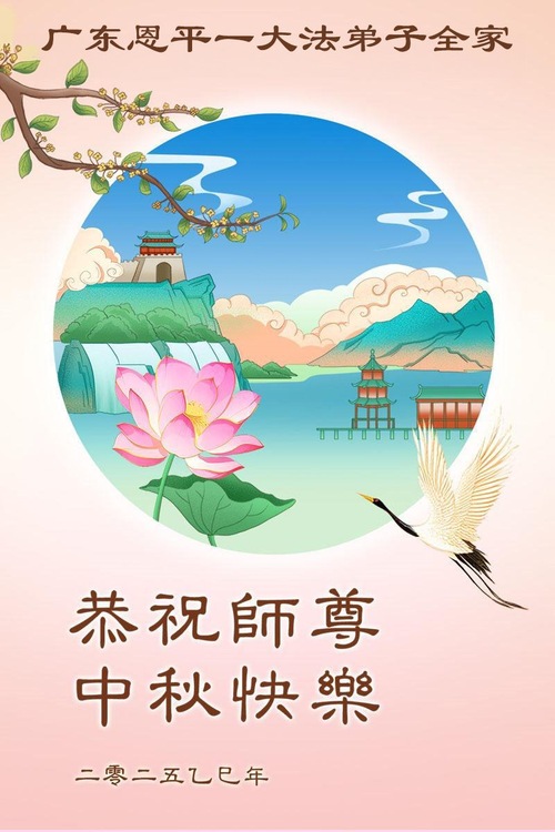 Falun-Dafa-Praktizierende in der chinesischen Provinz Guangdong wünschen dem verehrten Meister respektvoll ein frohes Mittherbstfest! (19 Grüße)