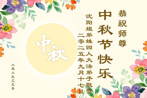 Falun-Dafa-Praktizierende in der chinesischen Stadt Shenyang wünschen dem verehrten Meister respektvoll ein frohes Mittherbstfest! (18 Grüße)