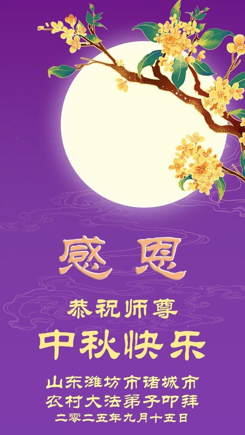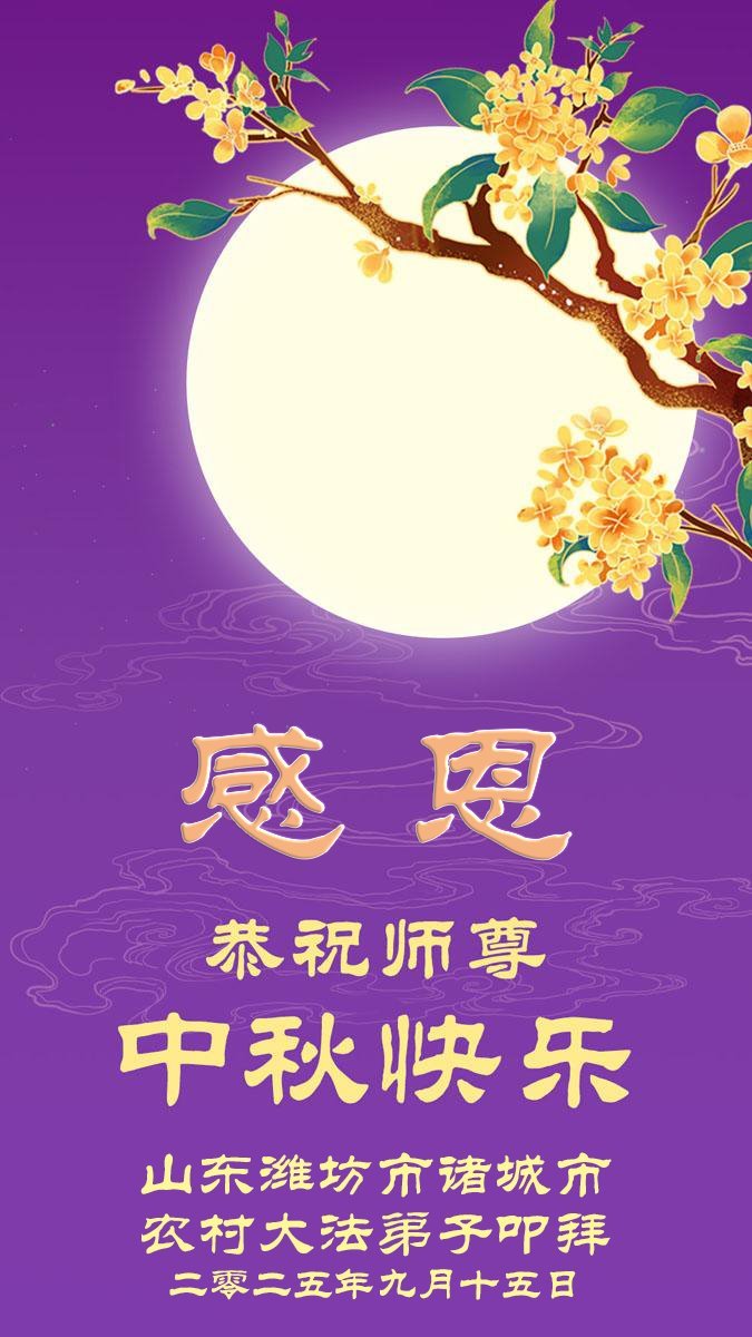 Falun-Dafa-Praktizierende in der chinesischen Stadt Weifang wünschen dem verehrten Meister respektvoll ein frohes Mittherbstfest! (19 Grüße)