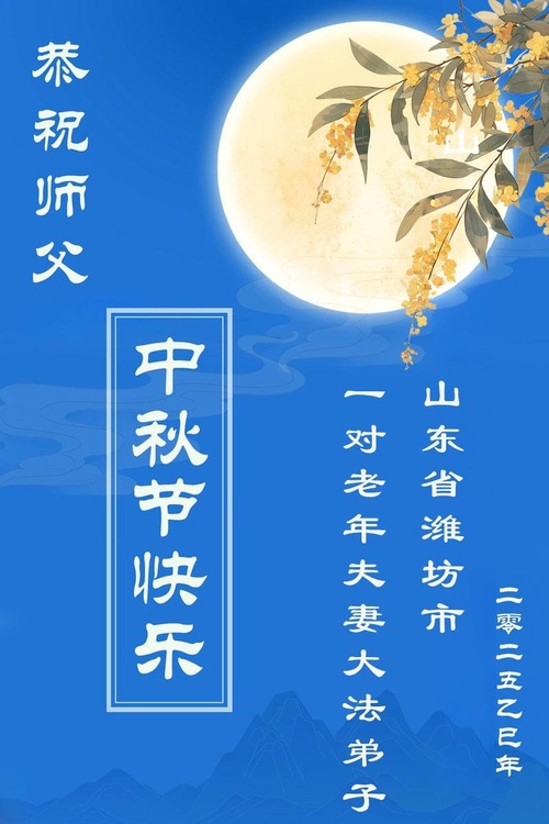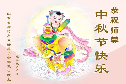 Falun-Dafa-Praktizierende in der chinesischen Stadt Weifang wünschen dem verehrten Meister respektvoll ein frohes Mittherbstfest! (20 Grüße)