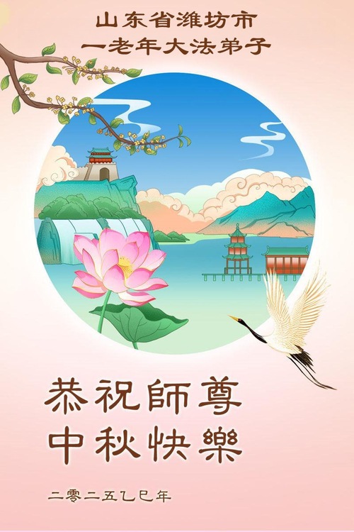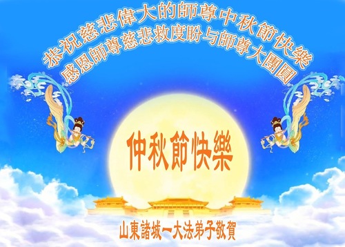Falun-Dafa-Praktizierende in der chinesischen Stadt Weifang wünschen dem verehrten Meister respektvoll ein frohes Mittherbstfest! (23 Grüße)