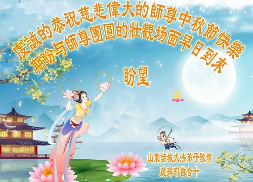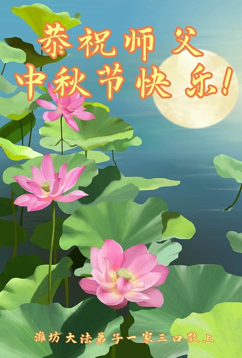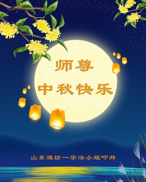 Falun-Dafa-Praktizierende in der chinesischen Stadt Weifang wünschen dem verehrten Meister respektvoll ein frohes Mittherbstfest! (18 Grüße)