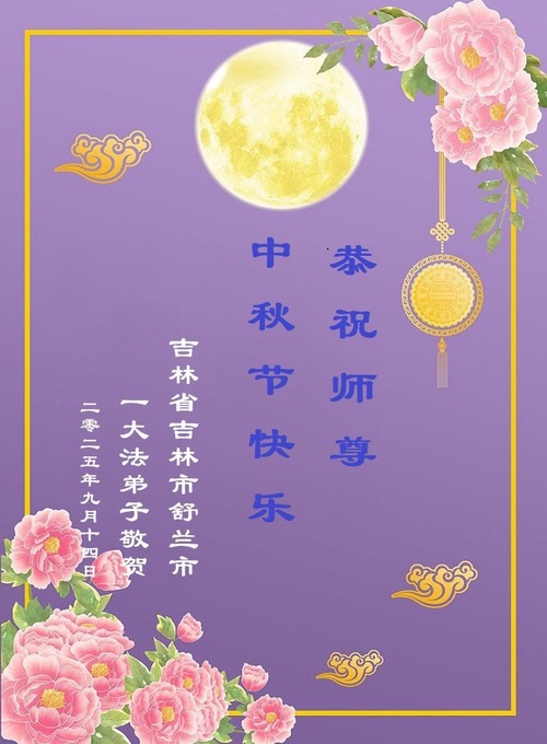 Falun-Dafa-Praktizierende in der chinesischen Stadt Jilin wünschen dem verehrten Meister respektvoll ein frohes Mittherbstfest! (18 Grüße)