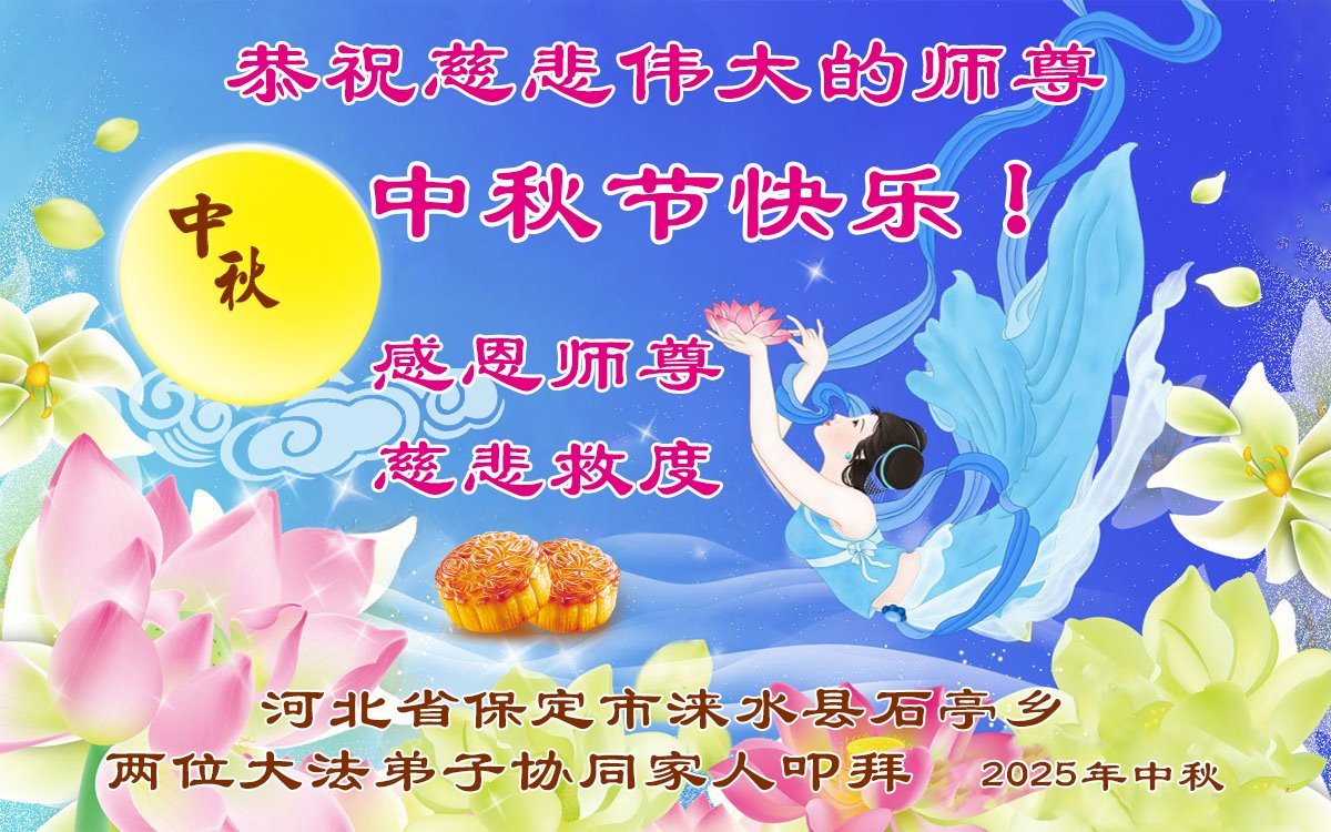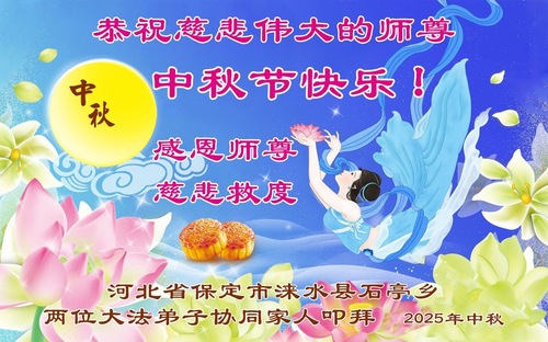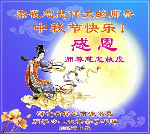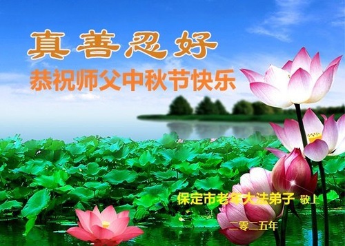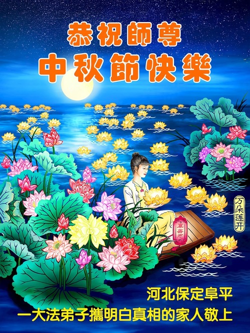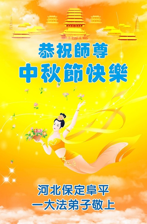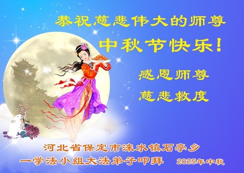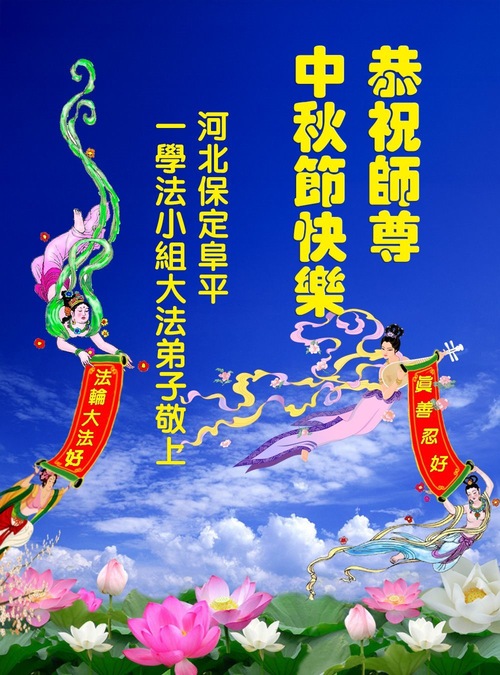 Falun-Dafa-Praktizierende in der chinesischen Stadt Baoding wünschen dem verehrten Meister respektvoll ein frohes Mittherbstfest! (19 Grüße)