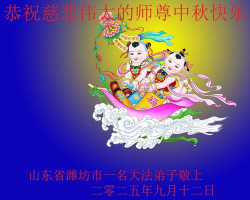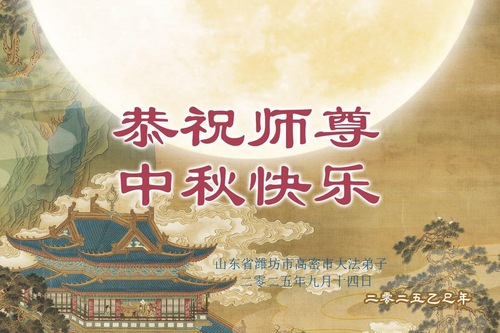 Falun-Dafa-Praktizierende in der chinesischen Stadt Weifang wünschen dem verehrten Meister respektvoll ein frohes Mittherbstfest! (18 Grüße)