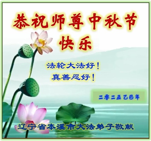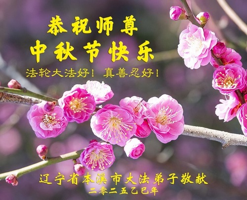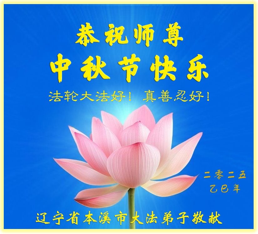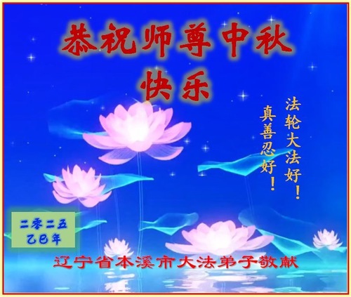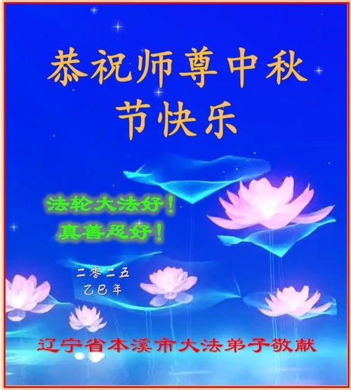 Falun-Dafa-Praktizierende in der chinesischen Stadt Benxi wünschen dem verehrten Meister respektvoll ein frohes Mittherbstfest! (18 Grüße)