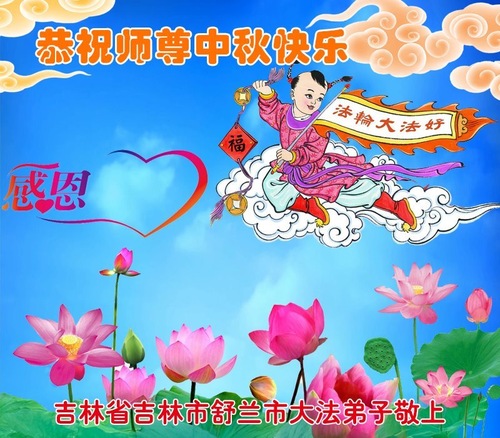 Falun-Dafa-Praktizierende in der chinesischen Stadt Jilin wünschen dem verehrten Meister respektvoll ein frohes Mittherbstfest! (18 Grüße)