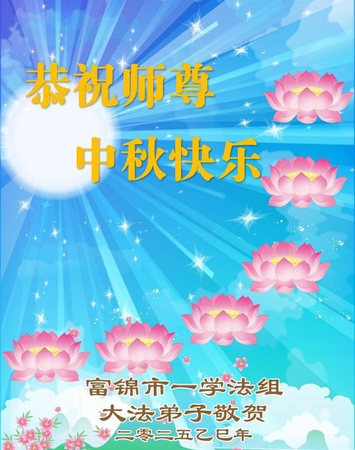 (Minghui.org) Zum Mittherbstfest senden Falun-Dafa-Praktizierende aus aller Welt Glückwünsche und Grußkarten an die Minghui-Website. Damit wünschen sie dem verehrten Meister Li Hongzhi respektvoll ein frohes Fest und danken für die Lehre des Falun Dafa mit den universellen Werten Wahrhaftigkeit, Güte und Nachsicht.