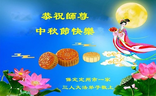 Falun-Dafa-Praktizierende in der chinesischen Stadt Baoding wünschen dem verehrten Meister respektvoll ein frohes Mittherbstfest! (19 Grüße)
