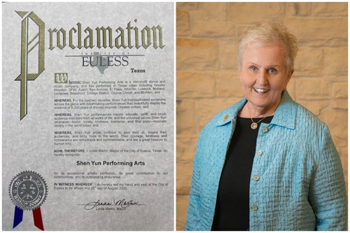 Linda Martin, Bürgermeisterin der Stadt Euless, würdigt am 28. August Shen Yun mit einer Proklamation