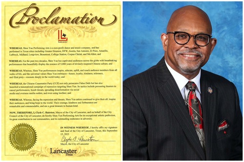 Die Proklamation für Shen Yun von Clyde C. Hairston, Bürgermeister der Stadt Lancaster
