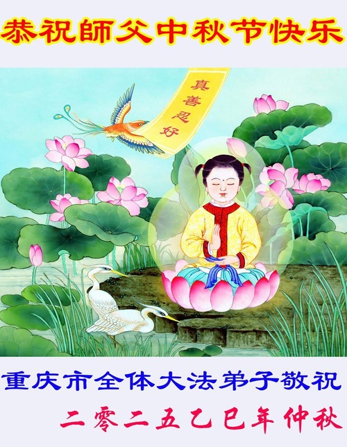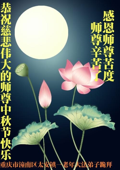 (Minghui.org) Zum Mittherbstfest senden Falun-Dafa-Praktizierende aus aller Welt Glückwünsche und Grußkarten an die Minghui-Website. Damit wünschen sie dem verehrten Meister Li Hongzhi respektvoll ein frohes Fest und danken für die Lehre des Falun Dafa mit den universellen Werten Wahrhaftigkeit, Güte und Nachsicht.