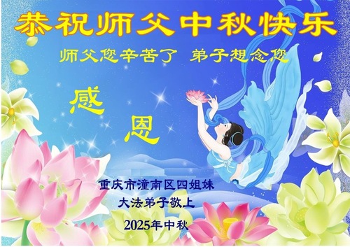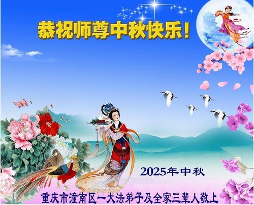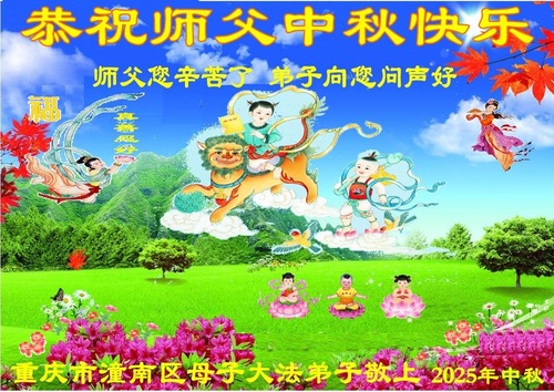 (Minghui.org) Zum Mittherbstfest senden Falun-Dafa-Praktizierende aus aller Welt Glückwünsche und Grußkarten an die Minghui-Website. Damit wünschen sie dem verehrten Meister Li Hongzhi respektvoll ein frohes Fest und danken für die Lehre des Falun Dafa mit den universellen Werten Wahrhaftigkeit, Güte und Nachsicht.