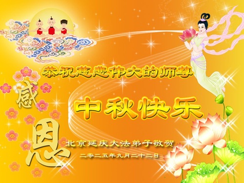 Falun-Dafa-Praktizierende in Peking wünschen dem verehrten Meister respektvoll ein frohes Mittherbstfest! (18 Grüße)