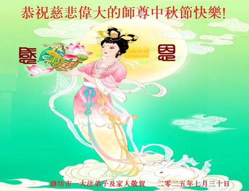 Falun-Dafa-Praktizierende in der Stadt Weifang wünschen dem verehrten Meister respektvoll ein frohes Mittherbstfest! (22 Grüße)