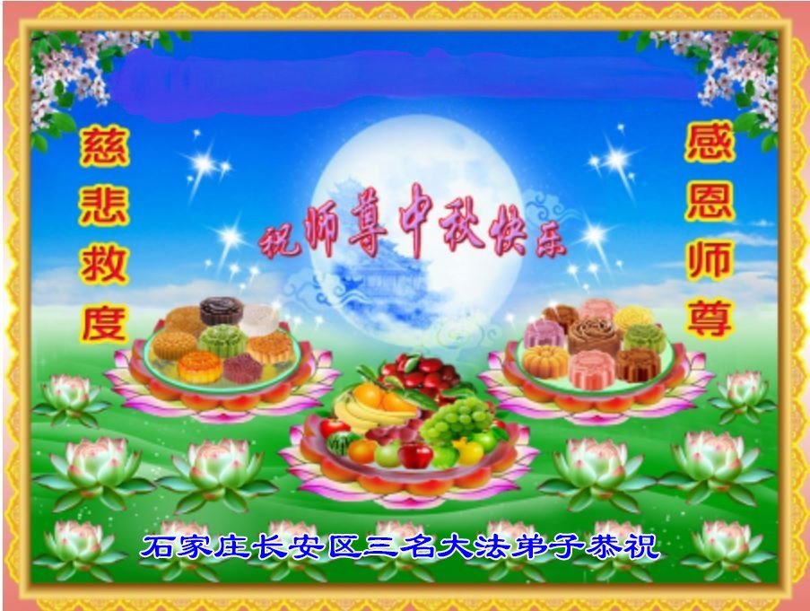 (Minghui.org) Zum Mittherbstfest senden Falun-Dafa-Praktizierende aus aller Welt Glückwünsche und Grußkarten an die Minghui-Website. Damit wünschen sie dem verehrten Meister Li Hongzhi respektvoll ein frohes Fest und danken für die Lehre des Falun Dafa mit den universellen Werten Wahrhaftigkeit, Güte und Nachsicht.