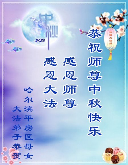 Falun-Dafa-Praktizierende in der Stadt Harbin wünschen dem verehrten Meister respektvoll ein frohes Mittherbstfest! (22 Grüße)