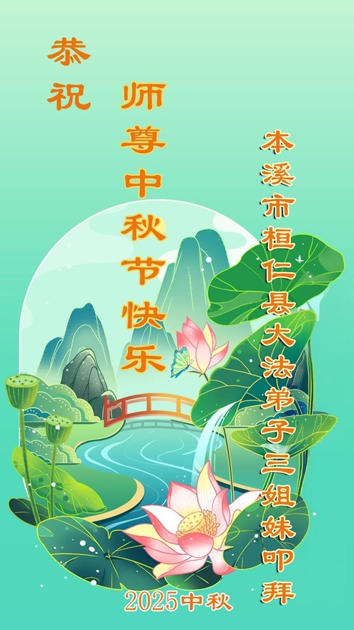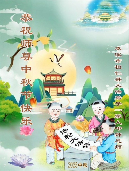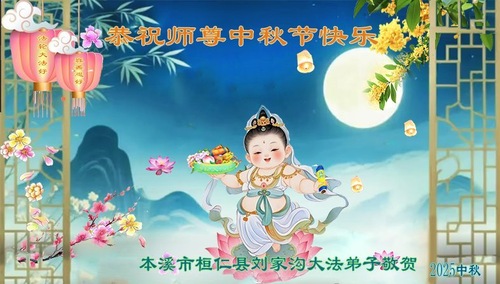 Falun-Dafa-Praktizierende in der chinesischen Stadt Benxi wünschen dem verehrten Meister respektvoll ein frohes Mittherbstfest! (18 Grüße)