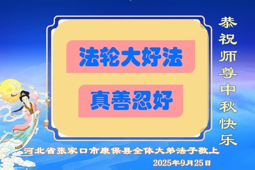 Falun-Dafa-Praktizierende in der chinesischen Stadt Zhangjiakou wünschen dem verehrten Meister respektvoll ein frohes Mittherbstfest! (18 Grüße)