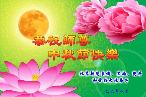 (Minghui.org) Zum Mittherbstfest senden Falun-Dafa-Praktizierende aus aller Welt Glückwünsche und Grußkarten an die Minghui-Website. Damit wünschen sie dem verehrten Meister Li Hongzhi respektvoll ein frohes Fest und danken für die Lehre des Falun Dafa mit den universellen Werten Wahrhaftigkeit, Güte und Nachsicht.