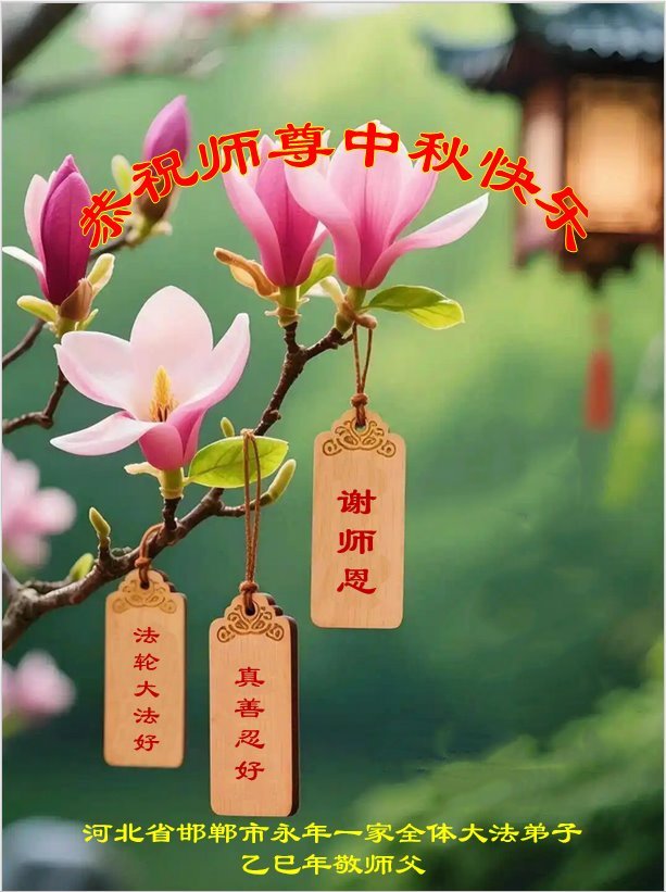 (Minghui.org) Zum Mittherbstfest senden Falun-Dafa-Praktizierende aus aller Welt Glückwünsche und Grußkarten an die Minghui-Website. Damit wünschen sie dem verehrten Meister Li Hongzhi respektvoll ein frohes Fest und danken für die Lehre des Falun Dafa mit den universellen Werten Wahrhaftigkeit, Güte und Nachsicht.