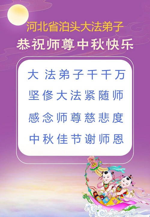 Falun-Dafa-Praktizierende in der Provinz Hebei wünschen dem verehrten Meister respektvoll ein frohes Mittherbstfest! (19 Grüße)