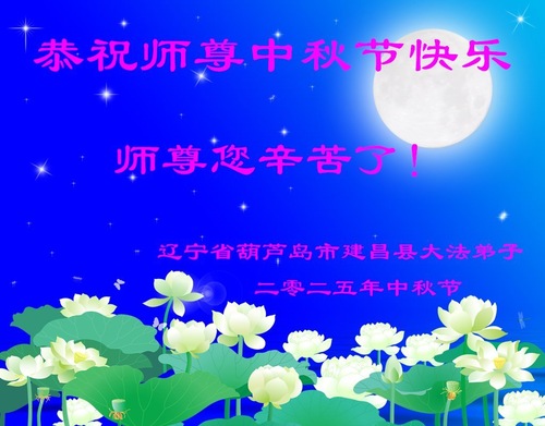 Falun-Dafa-Praktizierende in der chinesischen Stadt Huludao wünschen dem verehrten Meister respektvoll ein frohes Mittherbstfest! (23 Grüße)