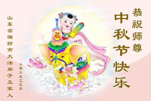 Falun-Dafa-Praktizierende in der chinesischen Stadt Weifang wünschen dem verehrten Meister respektvoll ein frohes Mittherbstfest! (21 Grüße)