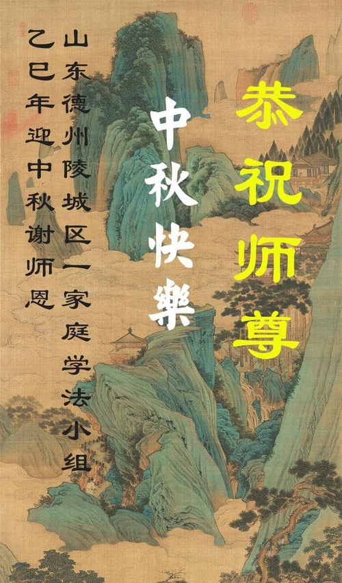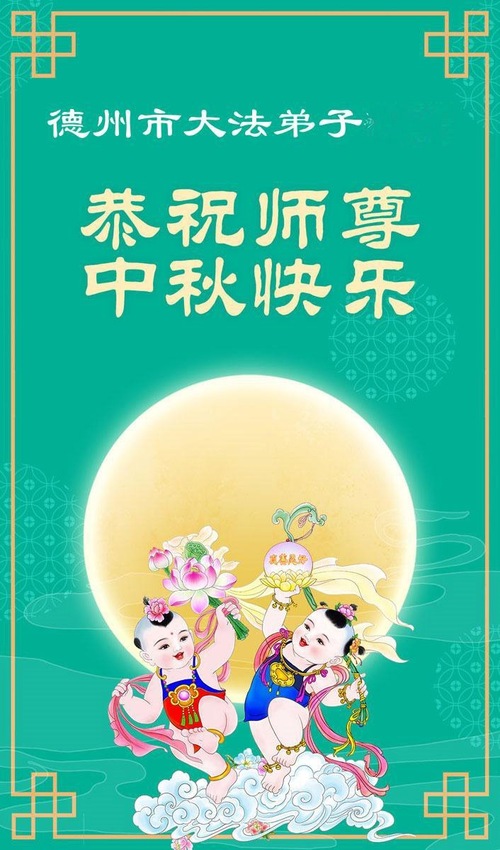 Falun-Dafa-Praktizierende in der chinesischen Stadt Dezhou wünschen dem verehrten Meister respektvoll ein frohes Mittherbstfest! (18 Grüße)