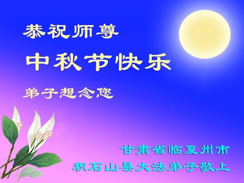 Falun-Dafa-Praktizierende in der chinesischen Provinz Gansu wünschen dem verehrten Meister respektvoll ein frohes Mittherbstfest! (19 Grüße)