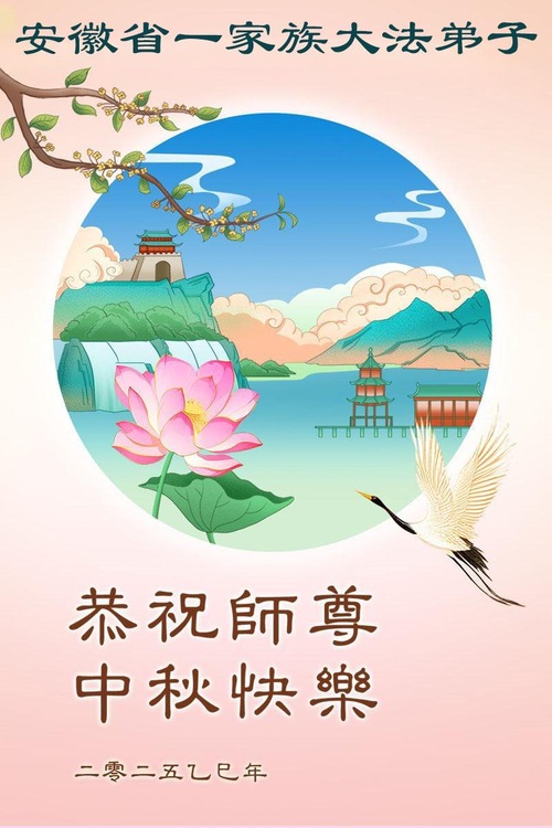 Falun-Dafa-Praktizierende in der chinesischen Provinz Anhui wünschen dem verehrten Meister respektvoll ein frohes Mittherbstfest! (19 Grüße)